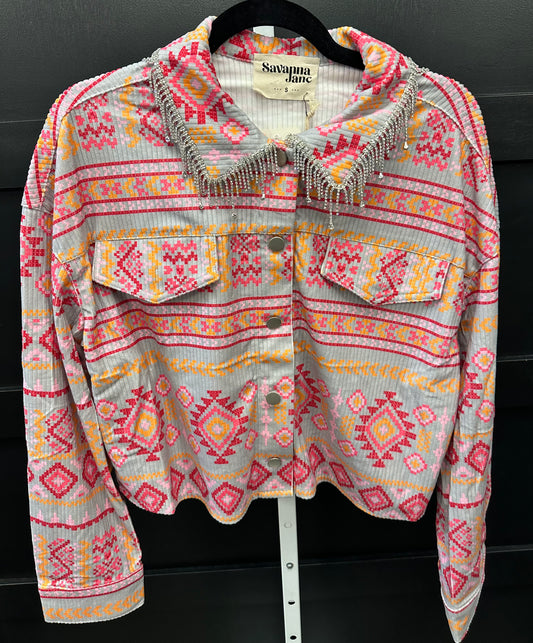 Aztec Corduroy Jacket pink/orange