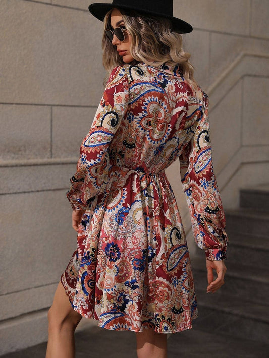 Two-Tone Hacci Criss-Cross Long Sleeve Dress