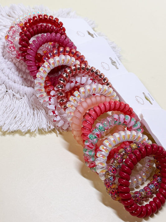 Sold outRed Color Theme Spiral Hair Ties