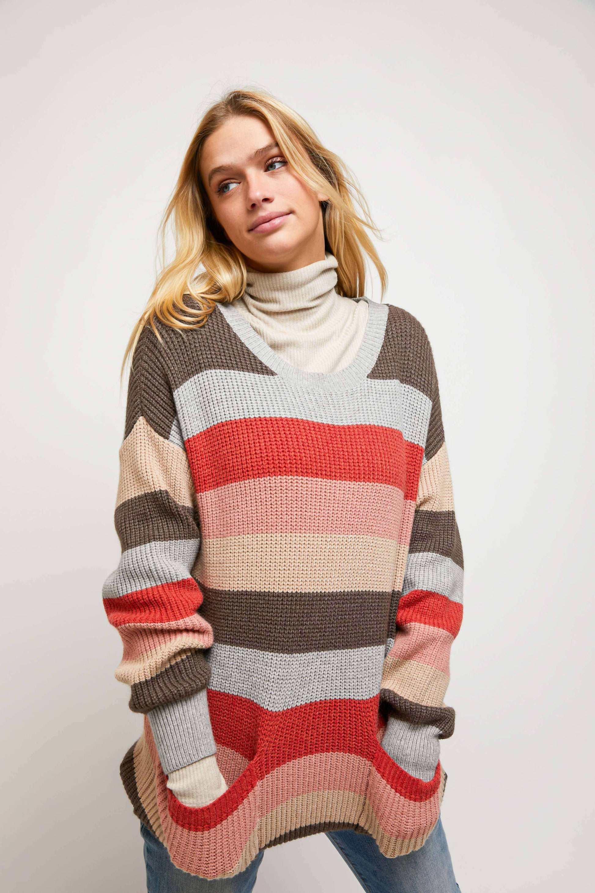 MULTI STRIPE ROUND NECK LONG SLEEVE SWEATER