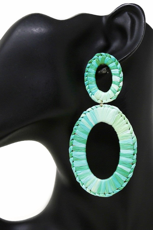 Oval Hoop Raffia Wrapped Dangle Earrings