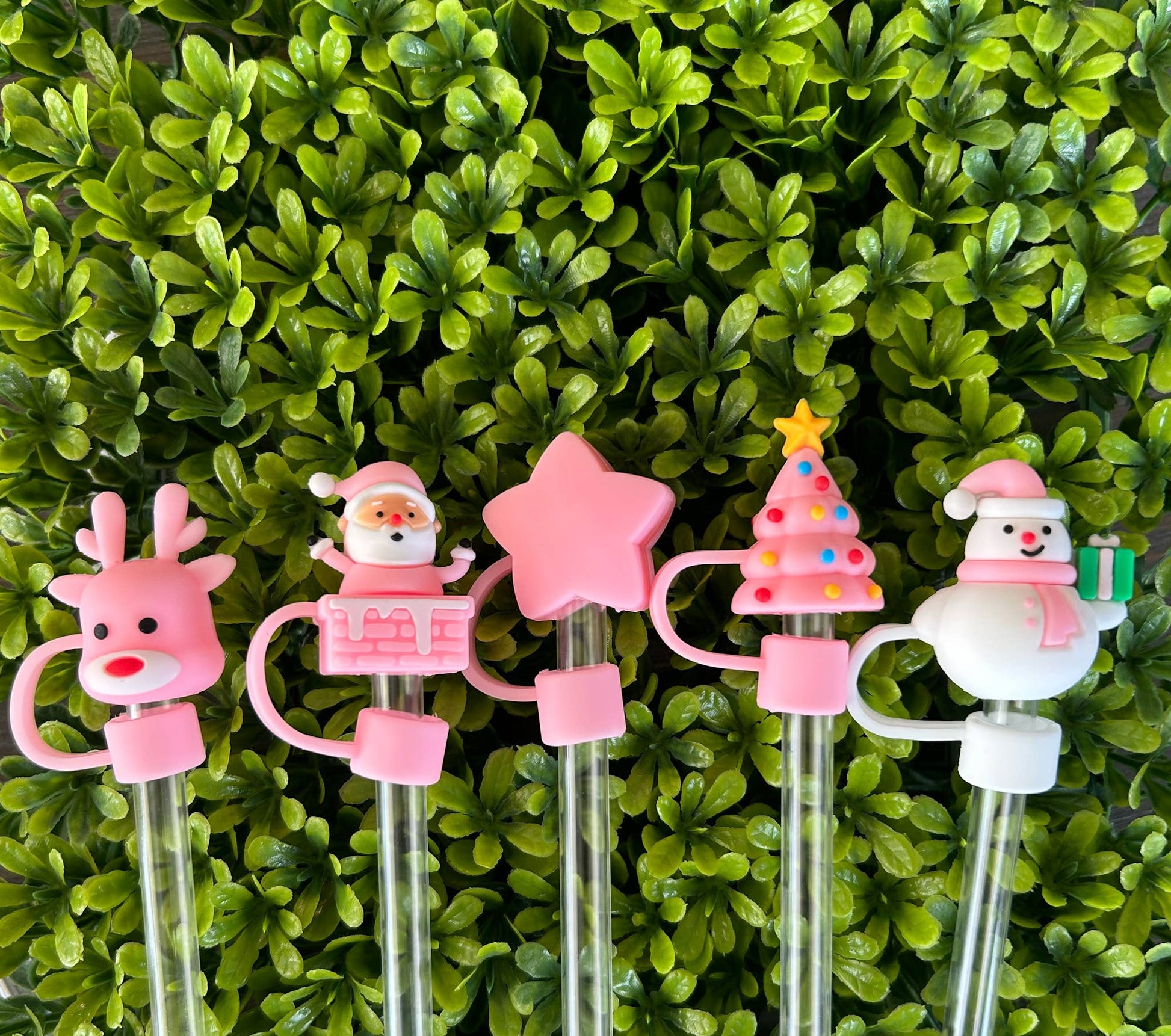 Pink Christmas Straw Toppers